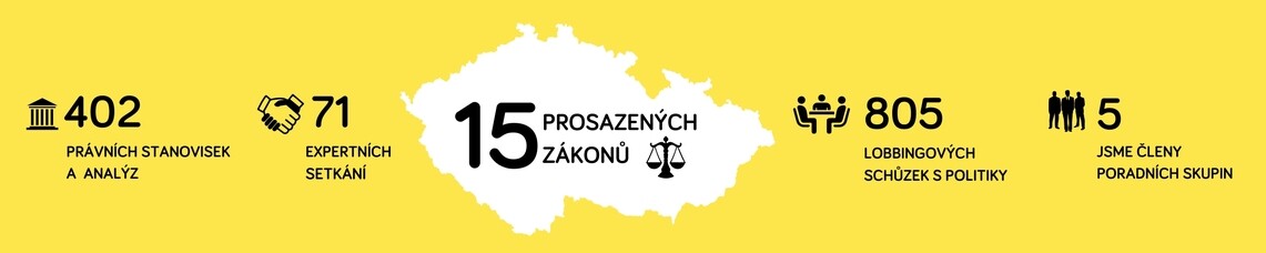 Týden co týden se scházíme s politiky, připravujeme podklady a sepisujeme stanoviska ke konkrétním návrhům. Informujeme veřejnost a média, zapojujeme ambasadory do lobbingu a o zákony se staráme i po jejich prosazení.