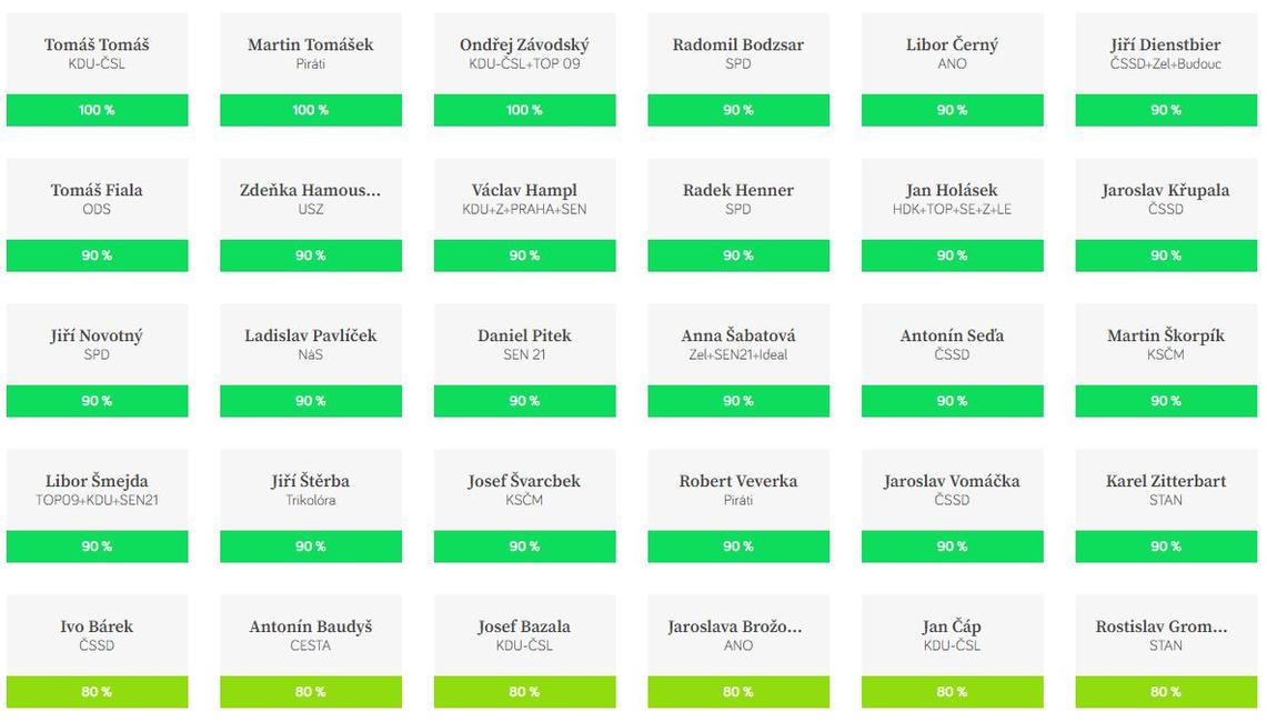 Chce váš kandidát do Senátu kopat za protikorupční legislativu? Oslovili jsme kandidáty ze všech volebních obvodů s dotazníkem, která protikorupční opatření chtějí při svém zvolení v Parlamentu prosazovat. Odpověď jsme obdrželi více než od poloviny z nich. 39 kandidátů podporuje všech 10 klíčových opatření na 100 %, téměř všichni pak alespoň polovinu z nich.
