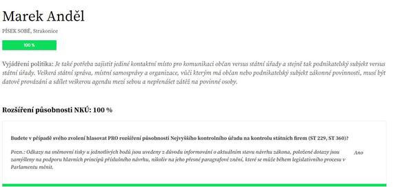 ČÍSTNejvětší podporu má mezi kandidáty veřejná evidence skutečných majitelů firem (s podmínkou řádné evidence pro získání dotací), která se právě projednává ve Sněmovně. V Senátu ji chce podpořit 115 kandidátů. V těsném závěsu je pak rozšíření působnosti Nejvyššího kontrolního úřadu, nezávislé přidělování exekutorů soudem a zprůhlednění lobbingu.