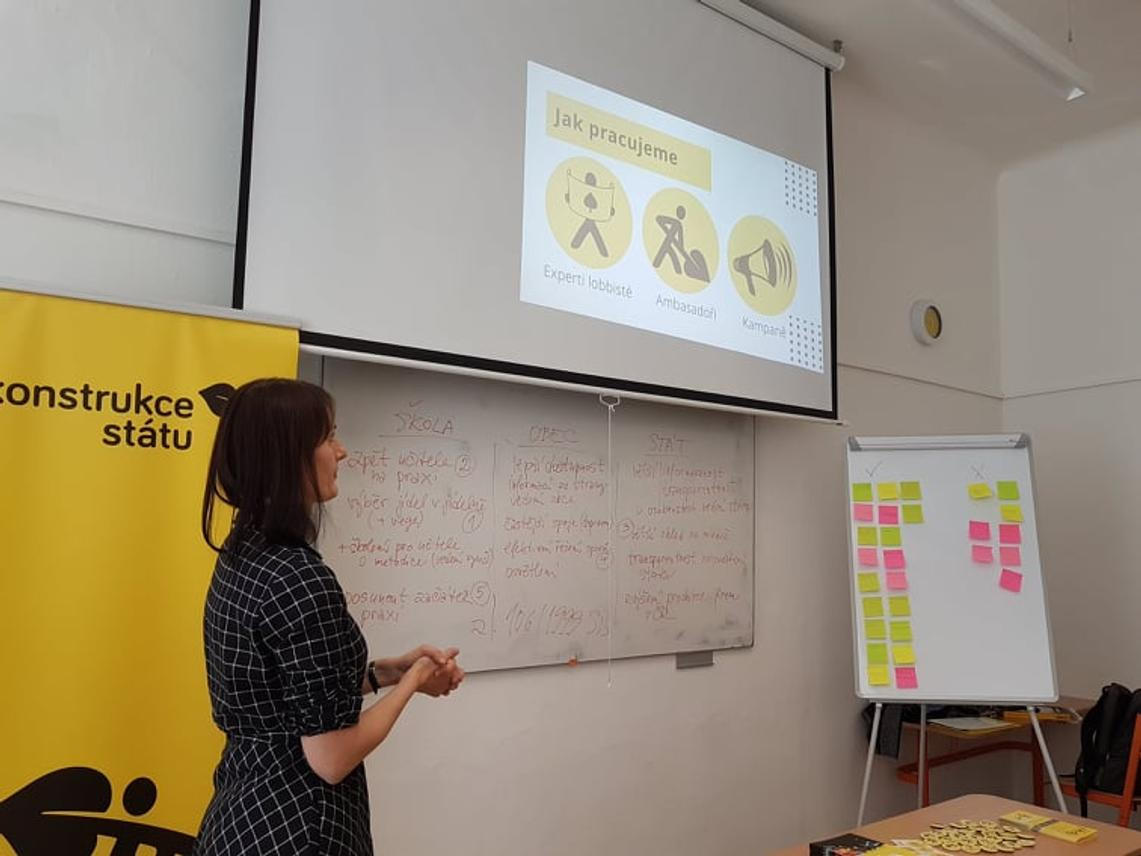 Workshop o občanském lobbingu je jednou z aktivit, na kterých se podílí naši dobrovolníci, ambasadoři Rekonstrukce státu. Zajímá-li tě tento typ aktivity, ozvi se nám. Program nabízíme dalším školám, které mají zájem o podporu budování občanské společnosti.