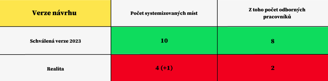 Přijatý zákon, který navrhlo a předložilo Ministerstvo spravedlnosti, určuje pro zajištění výkonu práce související s pokrytím všech výše jmenovaných oblastí působnosti, zřízení útvaru s minimálně 10 systemizovanými místy. Z toho 8 míst by mělo, dle důvodové zprávy, být obsazeno odbornými zaměstnanci, kteří by se měli věnovat samotné agendě ochrany oznamovatelů, 1 místo administrativním pracovníkem a 1 místo představeného.