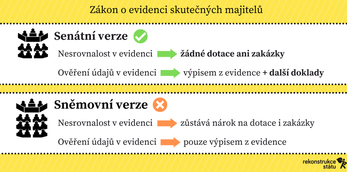 Poslanci přitom mohou významně posílit možnosti úřadů ověřovat pravdivost údajů v evidenci. Stačí, aby zvedli ruku pro senátní verzi zákona, o které budou jednat už 19. ledna. Senátor Tomáš Goláň (ODS) a Lukáš Wagenknecht (Piráti) připravili návrhy, které spolehlivě utnou všechny netransparentní penězovody.