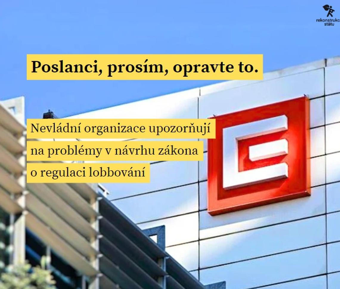 Zástupci čtrnácti nevládních organizací žádají dopisem zákonodárce, aby opravili problémové části návrhu zákona, který má nastavit pravidla pro lobbování v Česku. Největší výtkou organizací je to, že zákon mezi lobbisty neřadí zástupce polostátních firem jako ČEZ, České dráhy, apod. Tato výjimka by mohla umožnit obcházení zákona a nedává smysl, protože zástupci státem kontrolovaných společností v praxi často lobbují. Návrhy změn projedná Ústavně-právní výbor Poslanecké sněmovny.