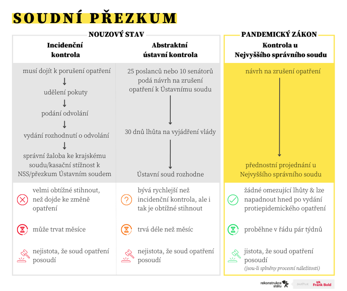 Jaké jsou rozdíly mezi soudním přezkumem v nouzovém stavu a podle pandemického zákona?