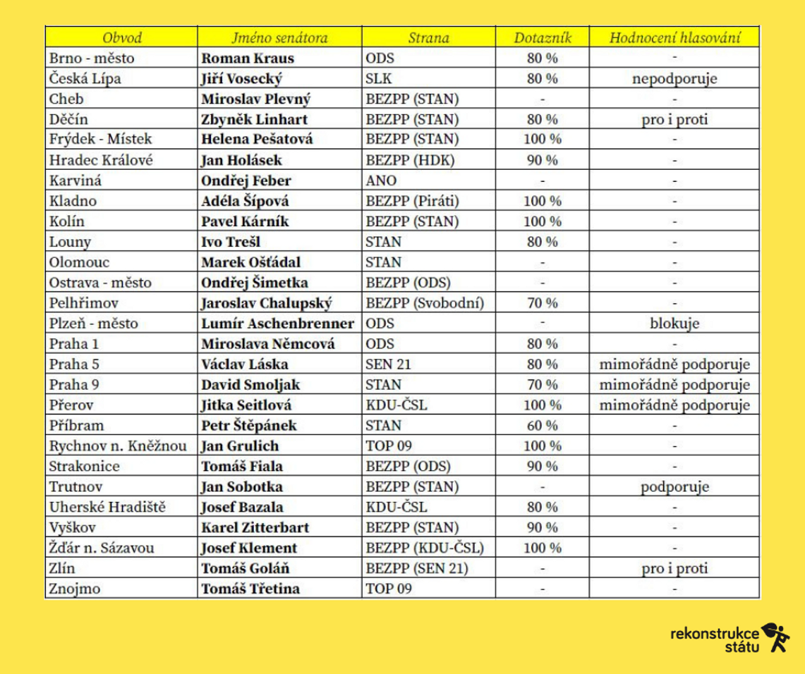 Od 8 nově zvolených senátorů jsme vyplněné dotazníky neobdrželi. Pevně však věříme, že i oni chtějí transparentní stát, který se zodpovídá občanům a neplýtvá s veřejnými penězi. Rádi všem nových senátorům představíme protikorupční zákony více zblízka.