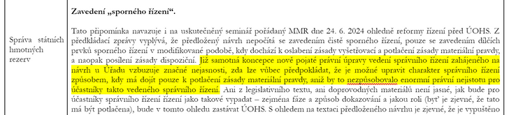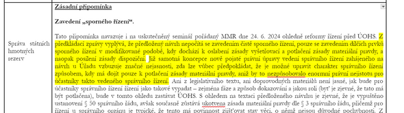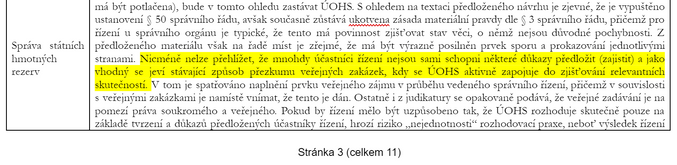 Správa státních hmotných rezerv navíc ke stejnému tématu doplnila dalších kritickou větu, která se doslova shoduje s připomínkami samotného ÚOHS. SSHR přitom své připomínky do systému vložila o den dříve než samotný ÚOHS: