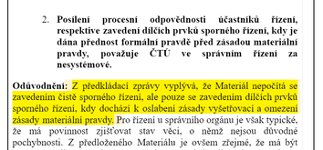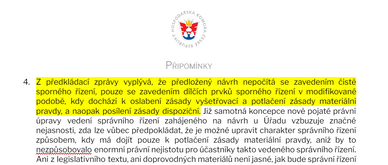 Obdobným způsobem se shodují i připomínky Českého telekomunikačního úřadu, Správy státních hmotných rezerv, Ministerstva financí, Hospodářské komory a Unie zaměstnavatelských svazů, ve kterých se s mírnou úpravou slovosledu či záměnou několika slov opakuje připomínka k problematice únosnosti důkazního břemene: