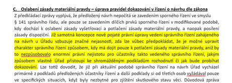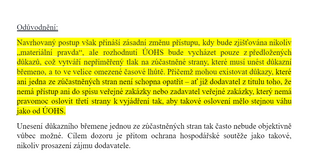 Připomínka ÚOHS ohledně důkazního břemene se kromě zmíněných připomínkových míst dále obsahově shoduje i s připomínkou Svazu měst a obcí ČR (SMO ČR), Českého statistického úřadu (ČSÚ), města Praha nebo Konfederace zaměstnavatelských a podnikatelských svazů ČR. Pro ilustraci níže uvádíme některé z nich: