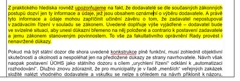 Proč ale subjekt jako Hospodářská komora bojuje proti zájmu svých vlastních členů (dodavatelů), nám není vůbec jasné. Shoda na této připomínce přitom padla i mezi dalšími připomínkovými místy jakými jsou Unie zaměstnavatelských svazů, Ministerstvo financí, Správa státních hmotných rezerv a samozřejmě ÚOHS.