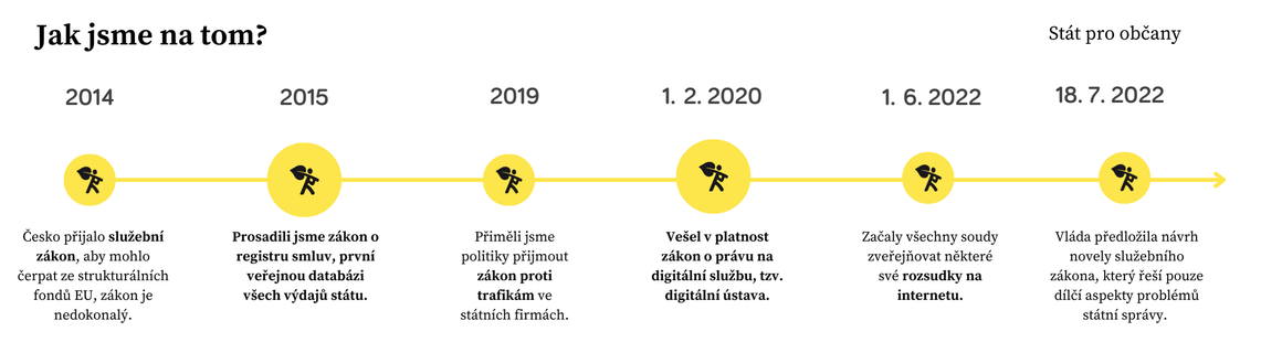 Devět zákonů proti korupci. To byl cíl, který jsme chtěli prosadit v roce 2013, kdy byla Rekonstrukce státu započata. Rekonstrukční mise se nakonec protáhla na víc než 10 let a překonala původní ambice. Podařilo se nám společně prosadit 25 zákonů pro otevřený, efektivní a hospodárný stát, kde korupce nemá místo. Příběh Rekonstrukce státu se nyní uzavírá a moc děkujeme všem, kteří byli jeho součástí.